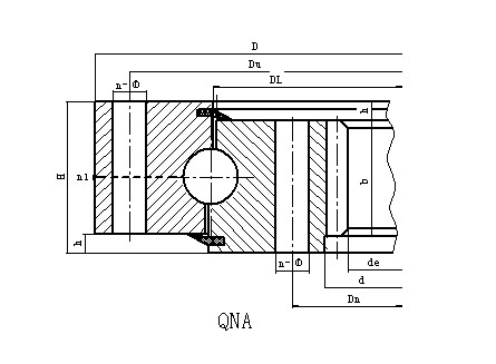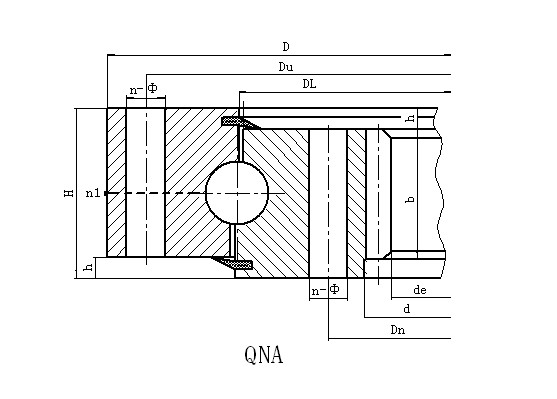 单列四点接触球回转支承由两个座环组成,结构紧凑,重量轻,钢球在四点与圆形滚道接触,可同时承受轴向力、径向力和倾斜力矩。