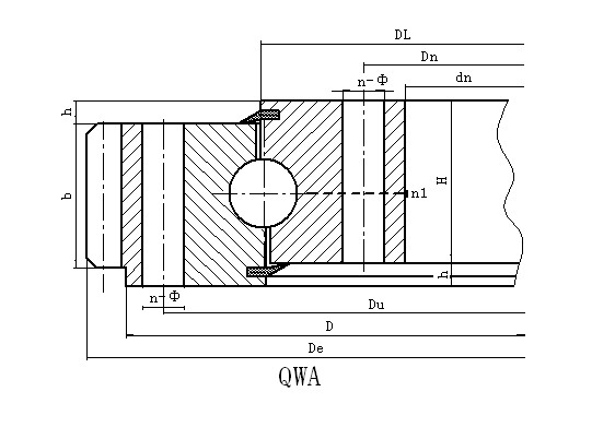 单列四点接触球回转支承由两个座环组成,结构紧凑,重量轻,钢球在四点与圆形滚道接触,可同时承受轴向力、径向力和倾斜力矩。