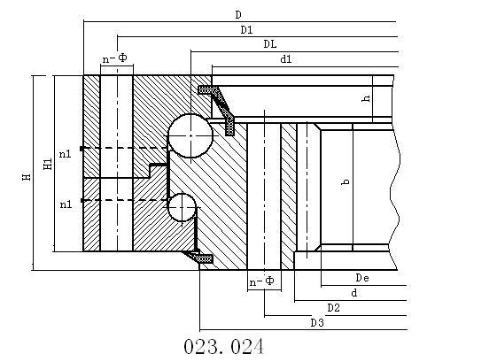 双列滚珠回转支承有三个座圈,钢球和间隔块可以直接布置在上下座圈中,根据受力情况安装两排不同直径的上下钢球。