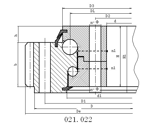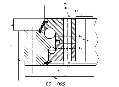 这种开放式装配非常方便,因为上下轴承滚道圆弧角为90°,可以承受较大的轴向力和倾斜力矩。当径向力大于0.1倍轴向力时,需要对滚道进行特殊设计。